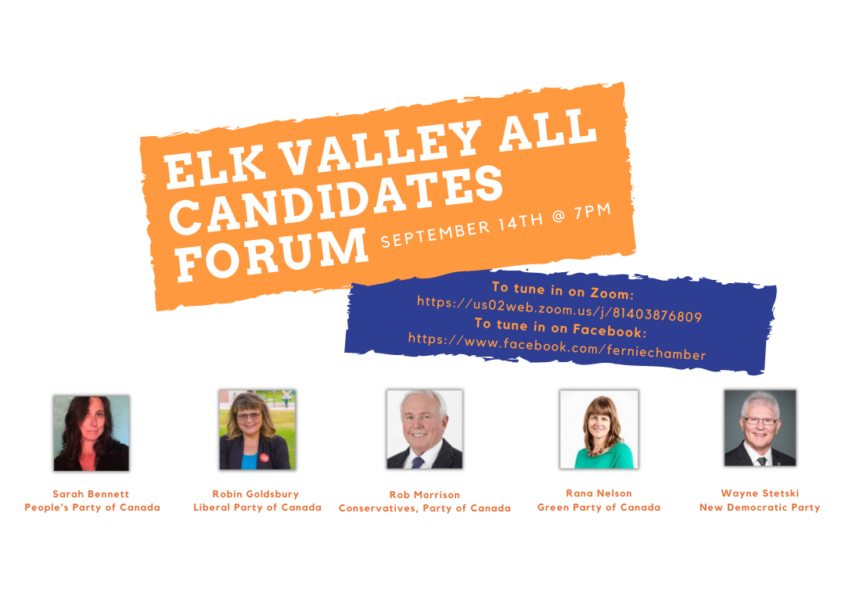 The Fernie Chamber of Commerce is excited to be partnering with the Sparwood and Elkford Chambers to present an Elk Valley All-Candidates Forum ahead of the upcoming federal election. The forum will take place at 7pm on Tuesday 14 September online using Zoom and will also be live streamed on the Fernie Chamber Facebook page,…