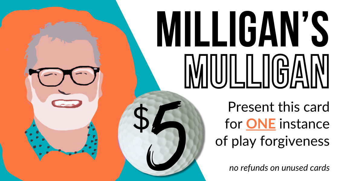 Bring cash and purchase your ‘Milligan’s Mulligans’ for $5 each!