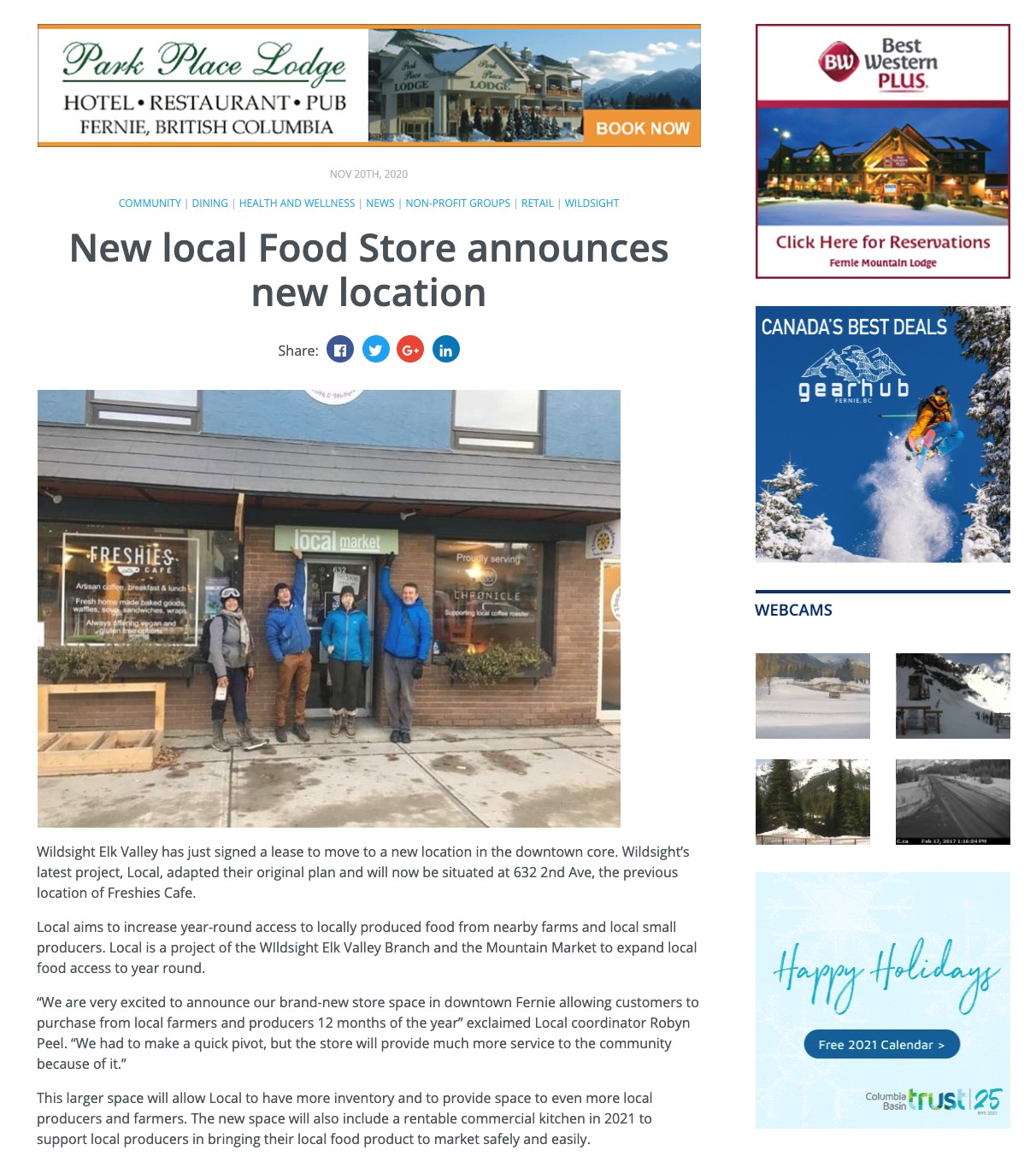At fernie.com traffic increased and we met the increase with added news coverage and created and pushed shop local messaging.  The increased traffic continued through summer and into winter and the engagement results have been significant.