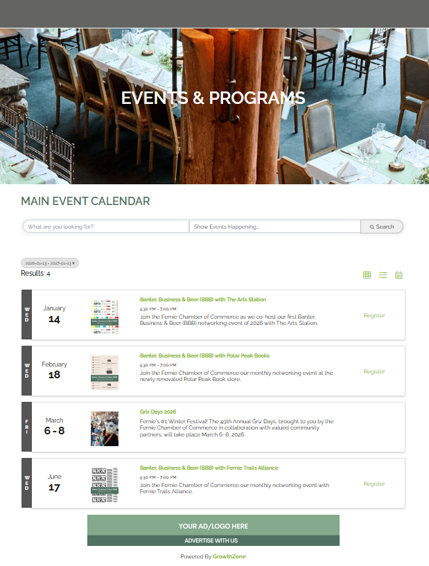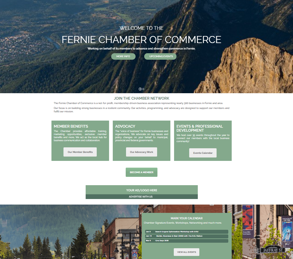 Reach Fernie’s engaged business community easily and affordably through newsletters, website banners, and sponsorship opportunities. Members enjoy preferred rates, and an advertising package is included with your membership. A simple way to promote your products, services, and events while boosting your local visibility.